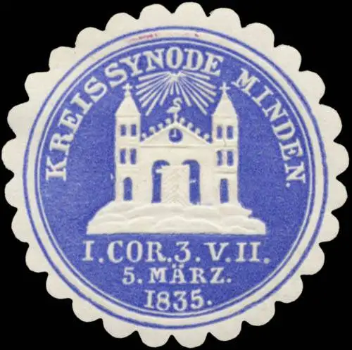Kirche, blau, weiß, geprägt, Größe/Zustand: 3 , guter Zustand, Original Verschluss-Siegelmarke aus Papier welche früher von Behörden, Firmen etc. zum Versiegeln der Briefe benutzt wurden