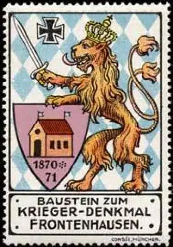 Baustein zum Kriegerdenkmal Frontenhausen, Größe/Zustand: 6x4 , guter Zustand, Original alte Reklamemarke die seinerzeit für die Werbung benutzt wurde