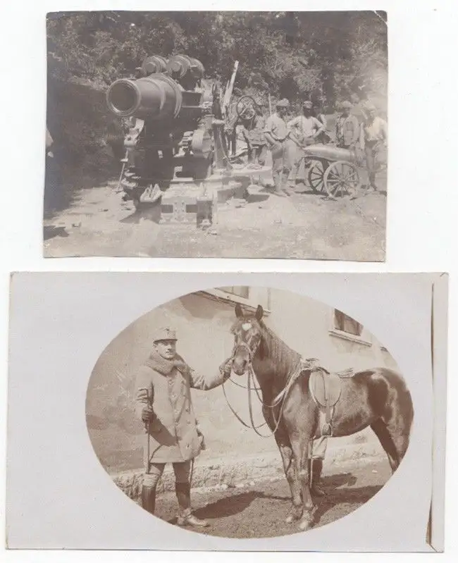 Bemerkungen: Photoalbum eines östererreichischen Soldaten (vermutlich des K. K. Pionierdetachments) der u. a. am Feldzug Österreich-Ungarns gegen Serbien eingesetzt war. Portrait- und Gruppenphotos von Soldaten, Eine Soldatenleiche an der Drina. Von einer Granate getroffenes österreichisches Feldgeschütz. Eine von österr. Truppen am 16. 10. 1914 über die Drina geschlagene Kriegsbrücke. Weiters: Österr. Truppen mit Geschütz im Feld, zerstörte Gebäude, und Photographien aus der Freizeit. Schließlich auch eine Ansichtskarte von dem eroberten Belgrad. Auch eine Orig.-Photogr. eines Marchetti-Kampfflugzeuges des 2. Weltkriegs, datiert 28. 8. 1944 liegt bei.