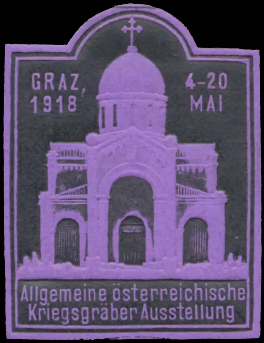 Allgemeine österreichische Kriegsgräber Ausstellung, violett, schwarz, Grab, Tod, Größe/Zustand: 4x3 , guter Zustand, Original alte Reklamemarke die seinerzeit für die Werbung benutzt wurde