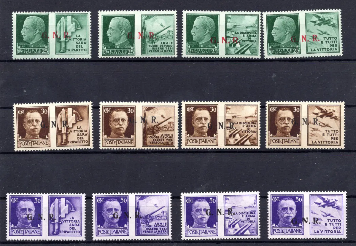 ** - Kriegspropaganda G.N.R. Brescia Nr. 13/II-24/II sehr gute komplette Serie mit Aufdruck der III. Typ - Ungewöhnlich - Kat. 425 Nr.531/19