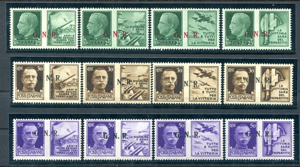 Kriegspropaganda G.N.R. komplette Serie Brescia III Typ Vollgummi - Kriegspropaganda G.N.R. n. 13/24 komplette Serie alle Brescia Aufdrucke Typ III - sehr gute Qualität und Zentrierung - Kat. 425 Cod. 197/13