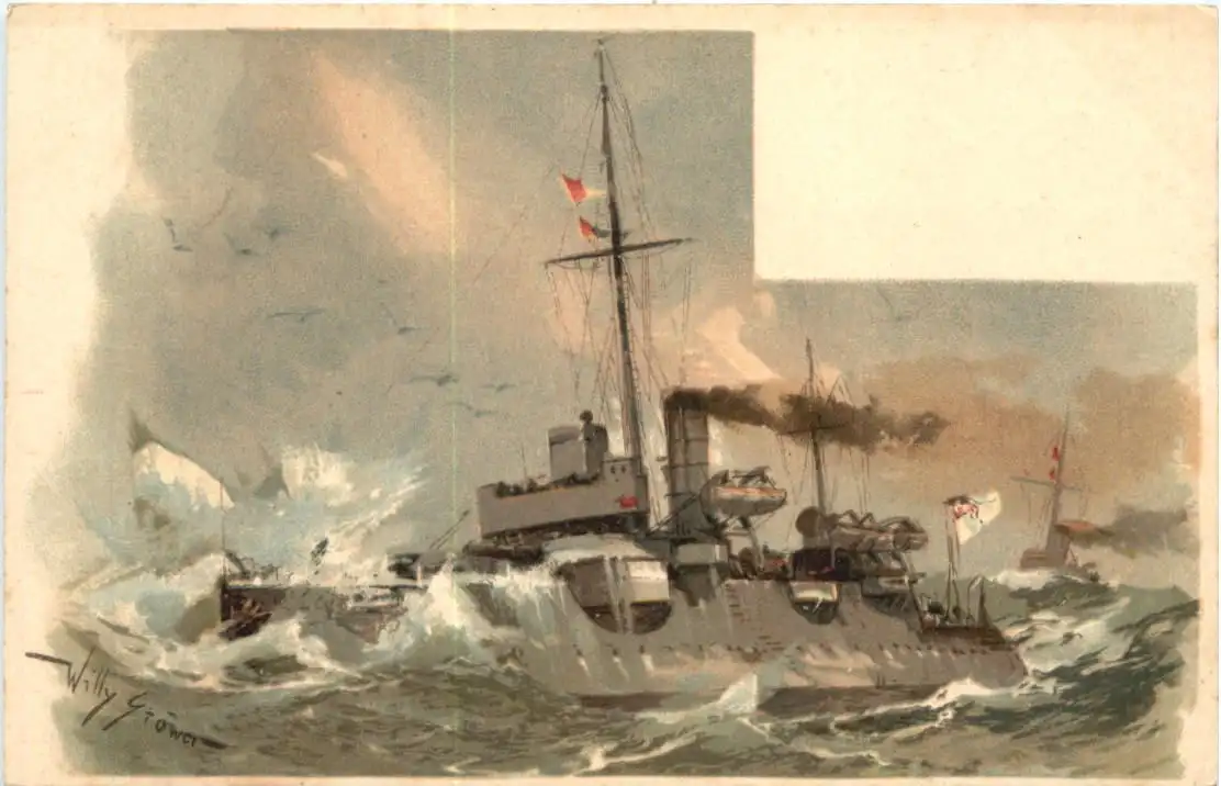 Kriegsschiff - Litho Künstler Willy Stöwer -785896