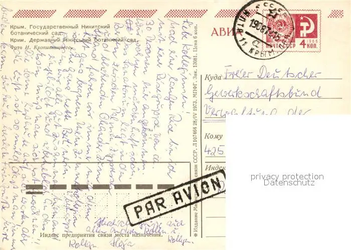 Krim_Russland Nikitinskij Botanischer Garten Krim_Russland postalisch gelaufen nach 1965 Erhaltung siehe scans [DarjaD84] DarjID84