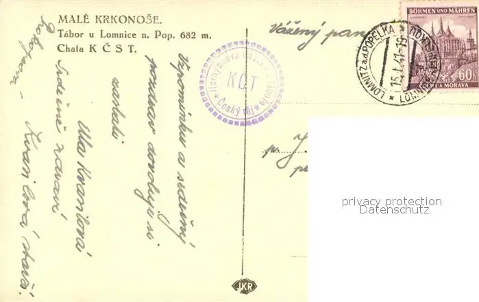 Krkonose Tabor u Lomnice n Pop Chata K CST Krkonose postalisch gelaufen 1941 Erhaltung siehe scans [WerneD78] WernPID7