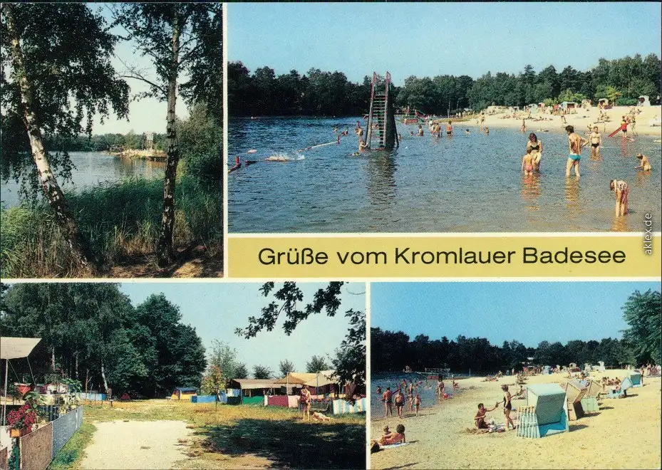 Kromlau Gablenz (Oberlausitz) Blick zum See, Strand, Campingplatz 1988