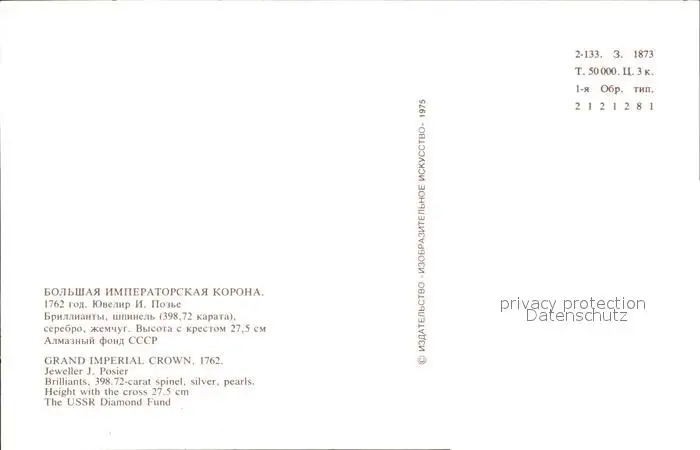 Krone Koenigshaeuser Grand Imperial Crown UssR Diamond Fund Koenigshaeuser postalisch nicht gelaufen nach 1965 Erhaltung siehe scans Alte Ansichtskarte Postkarte PaolPID1