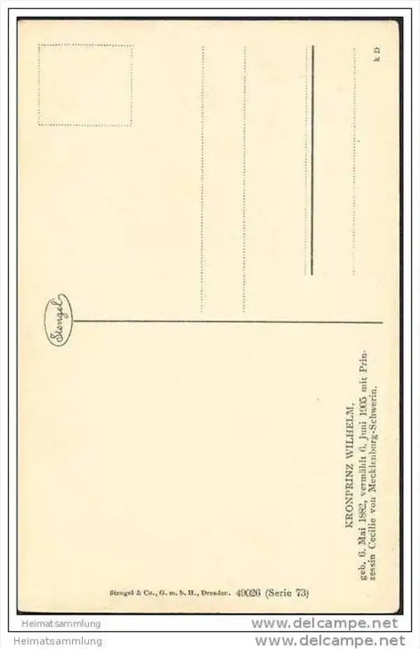 Kronprinz Wilhelm - Verlag Stengel & Co GmbH Dresden Nr. 49026 - leichte Gebrauchsspuren (G18109) *