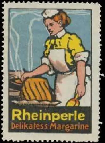 Rheinperle Delikatess Margarine, Größe/Zustand: 5x4 , guter Zustand, Original alte Reklamemarke die seinerzeit für die Werbung benutzt wurde