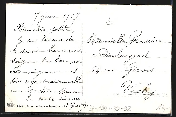ungelaufen, Rückseite beschrieben 1917, guter Zustand