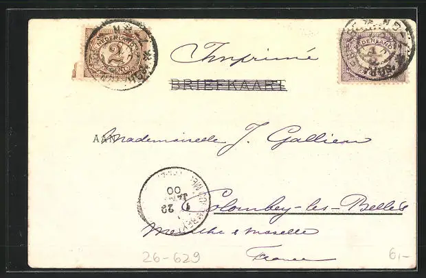 alte Ansichtskarte, gelaufen 1900, Stempelspur, Eckknick re. unten, guter Zustand