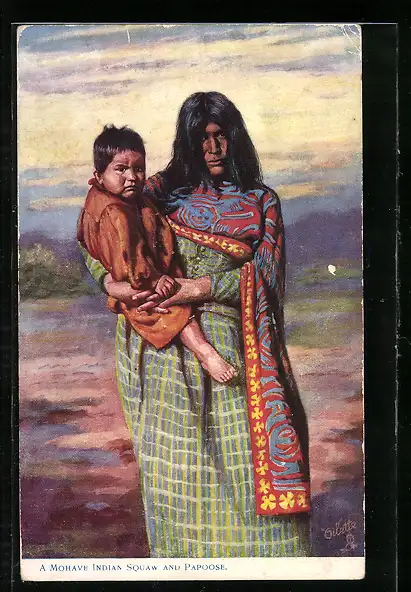 Künstler-AK A Mohave Indian Squaw and Papoose