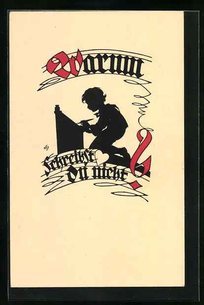 Künstler-AK A. Ost: Knabe beim Schreiben am Pult