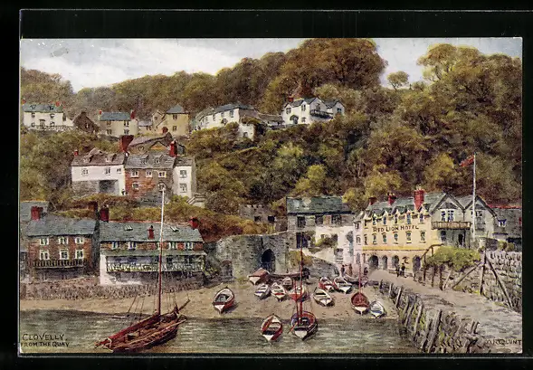 Künstler-AK A. R. Quinton: Clovelly, Panorama from the Quay