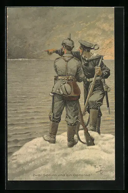 Künstler-AK A. Thiele: Matrose und Soldat blicken aufs Wasser