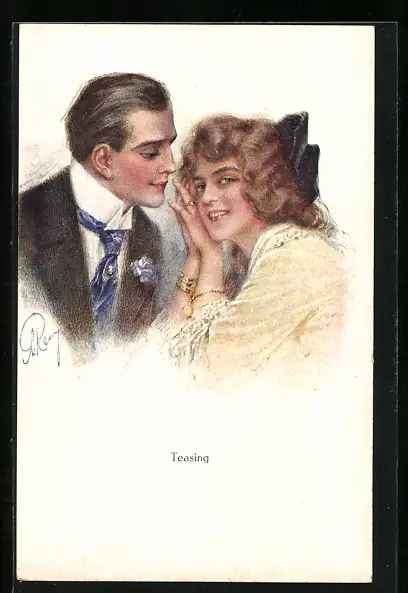 Künstler-AK A.Remy: Teasing, Liebespaar in inniger Pose