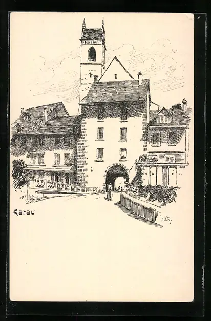Künstler-AK Aarau, Frau vor dem Stadttor