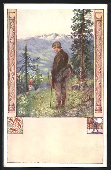 Künstler-AK Abschied vom Berge