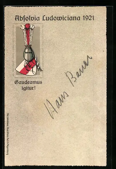 Künstler-AK Absolvia Ludowiciana 1921, Gaudeamus igitur!, Studentenwappen