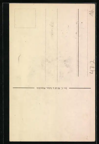 Personenbezogene Daten auf der Rückseite der Karte wurden durch blauen Textmarker unkenntlich gemacht. Die blauen Stellen sind auf die Vorderseite durchgeweicht und wirken sich negativ auf das Postkartenfoto aus