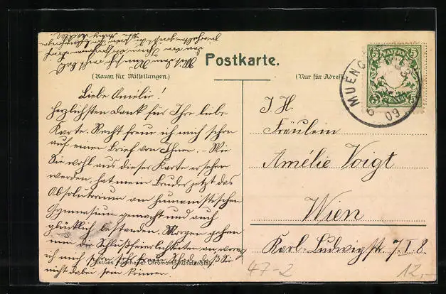 alte Ansichtskarte, gelaufen 1909, Eckknick oben rechts, guter Zustand