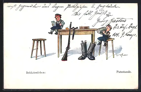 Künstler-AK Ad. Hoffmann: Kleine Soldaten in der Putzstunde