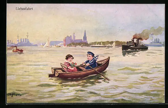 Künstler-AK Ad. Hoffmann: Liebesfahrt im Ruderboot