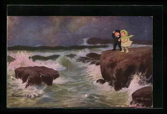 Künstler-AK Ad. Hoffmann: Pärchen an der stürmischen See