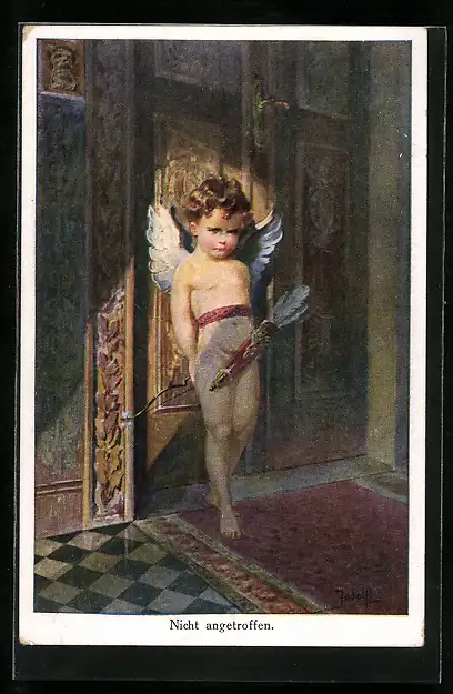 Künstler-AK Adolf (Jodolfi): Nicht angetroffen, enttäuschter Amor