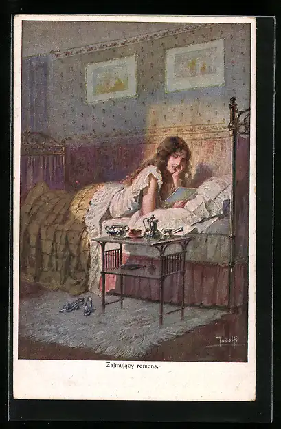 Künstler-AK Adolf (Jodolfi): Wie lieb er schreibt, Freude über einen Liebesbrief
