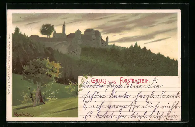 Künstler-AK Alfred Mailick: Fürstenstein, Ort im Abendlicht