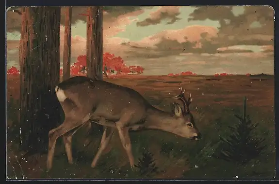 Künstler-AK Alfred Mailick: Junger Rehbock auf einer Schonung