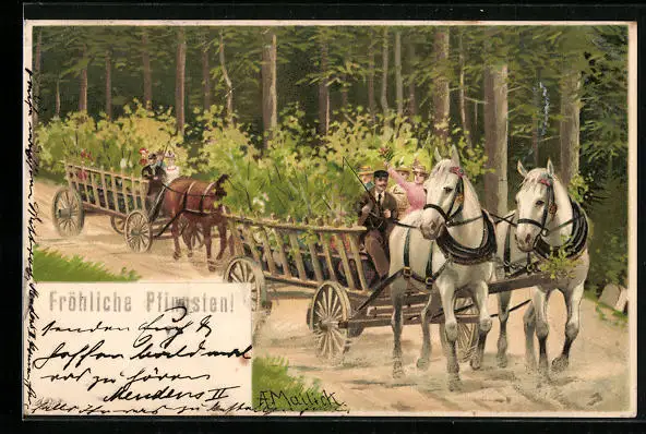 Künstler-AK Alfred Mailick: Pferdekutschen, Pfingsten