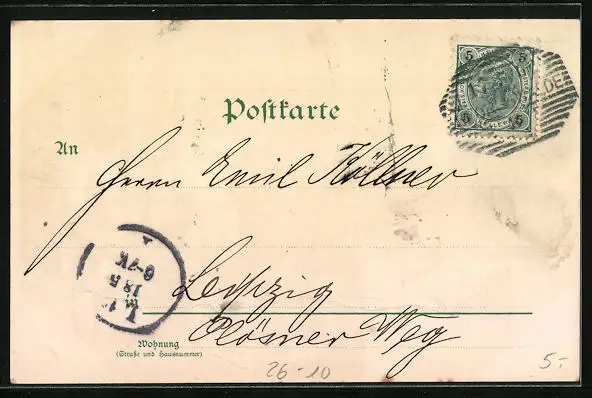 alte Ansichtskarte, gelaufen, Bugspur unten rechts, guter Zustand