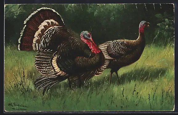 Künstler-AK Alfred Schönian: Truthahn und Henne