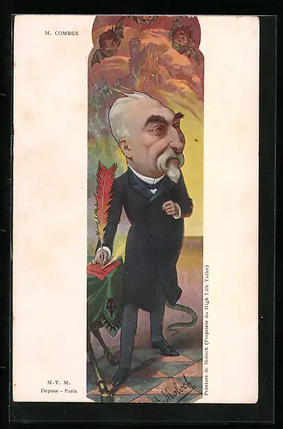 Künstler-AK Alphonse Hector Colomb (B. Moloch): Émile Combes mit grossem Kopf