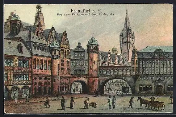 Künstler-AK Alt-Frankfurt, Neues Rathaus auf dem Paulsplatz
