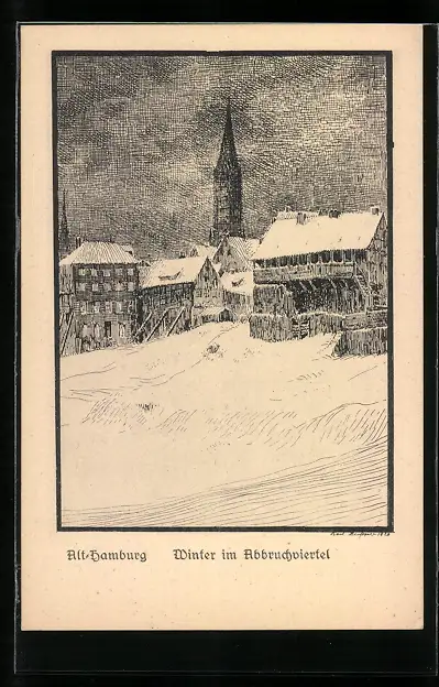 Künstler-AK Alt-Hamburg, Winter im Abbruchviertel