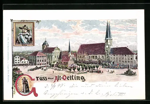 Künstler-AK Alt-Oetting, Ortspartie mit Kirche, Tilly, Gnadenbild