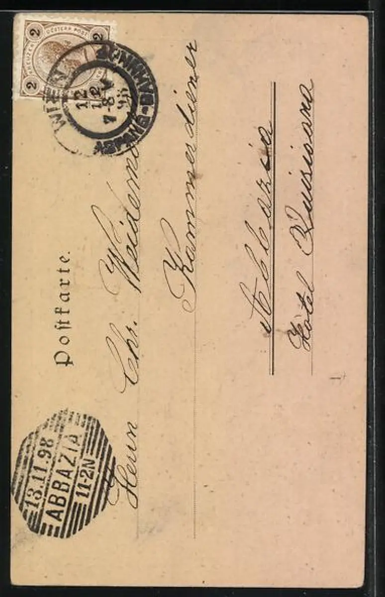 alte Ansichtskarte, gelaufen 1898, Pinloch re. unten, Stempelspur, guter Zustand