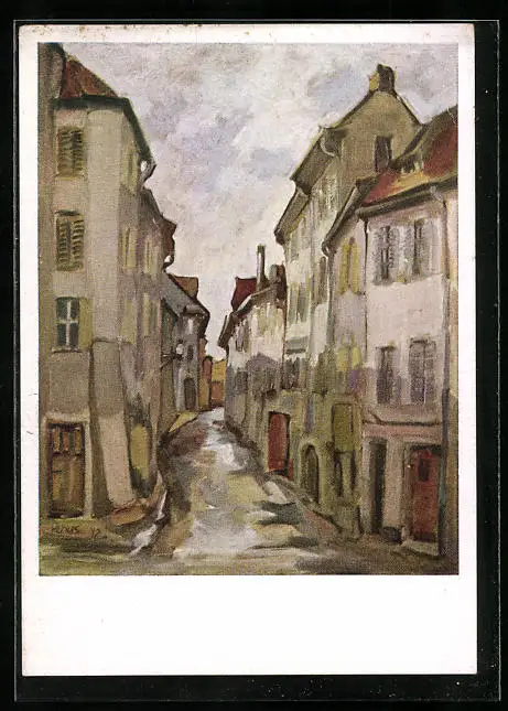 Künstler-AK Altkirch, Strassenpartie der Bravekindergasse