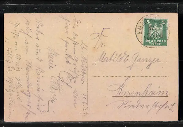 gelaufen 1925, Eckknick oben li., guter Zustand