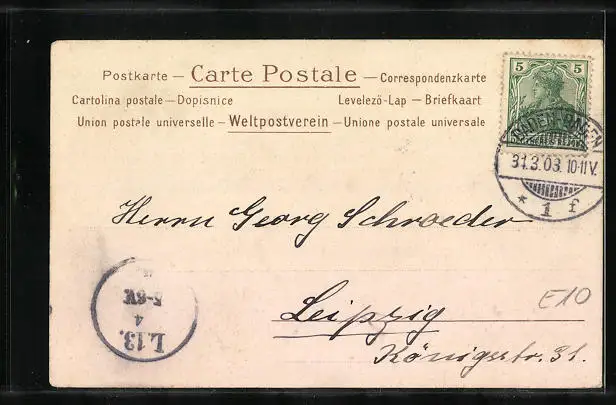 alte Ansichtskarte, gelaufen 1903, guter Zustand