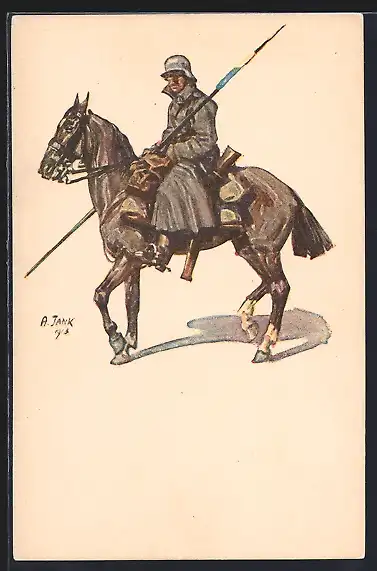 Künstler-AK Angelo Jank: Deutscher Kavallerist zu Pferd
