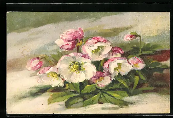 Künstler-AK Anna Haller: Blüten im Schnee, Frühling