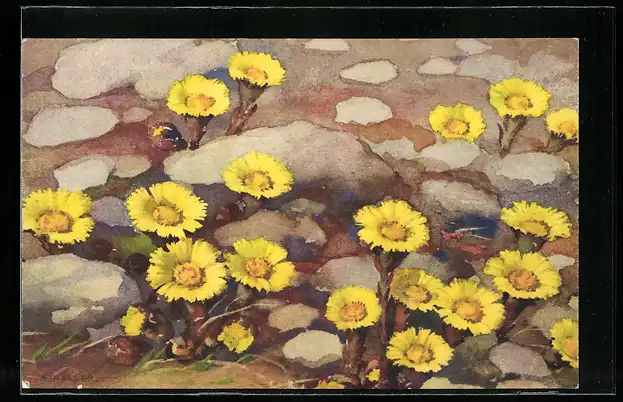 Künstler-AK Anna Haller: Margeriten zwischen Steinen