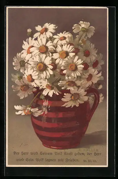 Künstler-AK Anna Haller: Margeritenstrauss in einem Krug
