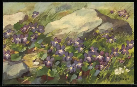 Künstler-AK Anna Haller: Veilchen an einem Stein