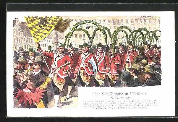 Künstler-AK Anton Hoffmann - München: Der Schäfflertanz in München - Der Aufmarsch