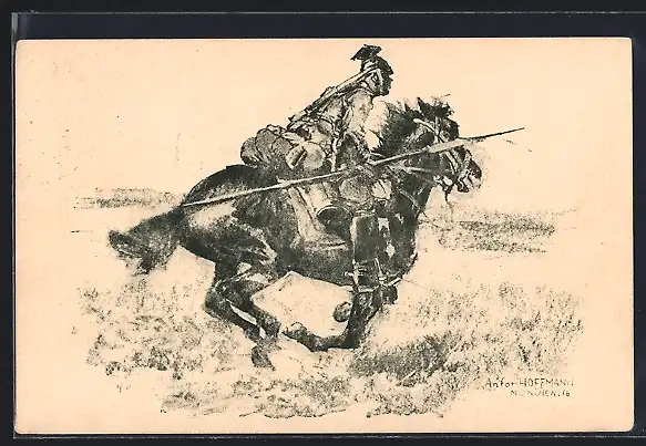 Künstler-AK Anton Hoffmann - München: Soldat in Uniform auf seinem Pferd